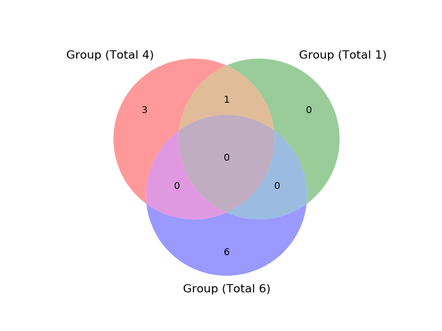venn3([set1, set2, set3], ["Group (Total {})".format(length) for (length) in lengths]) 谢谢。