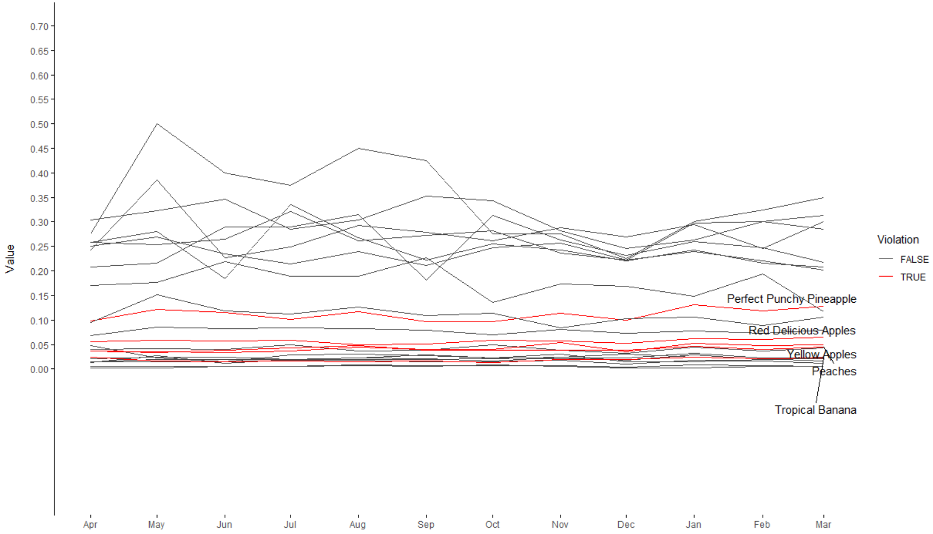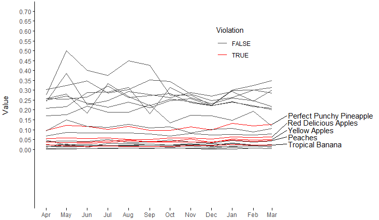 lbl <- c("Tropical Banana", "Peaches", "Red Delicious Apples", "Yellow Apples", "Perfect Punchy Pineapple")