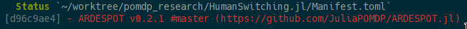 最近,我在更改以前在标记master上使用的依赖项(通过add DESPOT#master添加到包模式)并希望在dev模式(例如在包模式运行dev ARDESOT中)中使用它时,遇到了这个问题。但是,不知怎么的,包没有更改为dev模式,所以我尝试删除它。删除它之后,它就离开了Project.toml和Manifest.toml (这是预期的行为)。但是,重新启动REPL并运行Pkg.status()仍然显示删除包的条目: