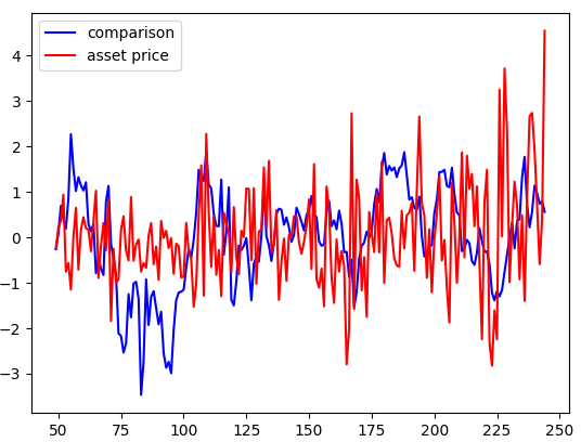 如果要绘制一个互相关函数来描述这一点,下面是它的样子(包括代码)。
