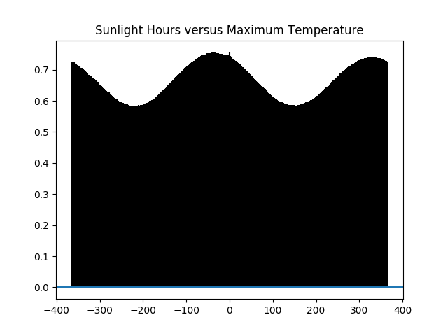 注意,日照时数的关联强度比最高温度持续的时间更长,这意味着长日照时间的影响持续影响温度(即一个是格兰杰引起的另一个)。