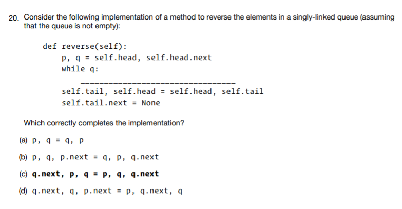 q = q.next通常,如果我们在单独的语句中执行这些操作,则需要一个临时变量来存储q.next的值--但是多个赋值允许我们绕过这一点: