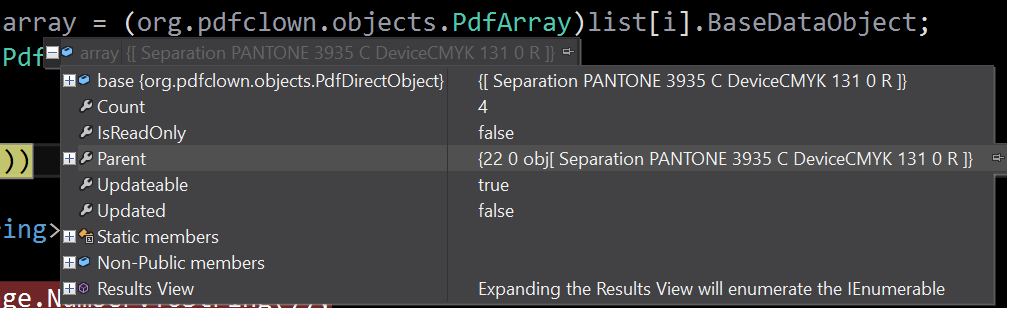org.pdfclown.objects.PdfArray array = (org.pdfclown.objects.PdfArray)list[i].BaseDataObject;