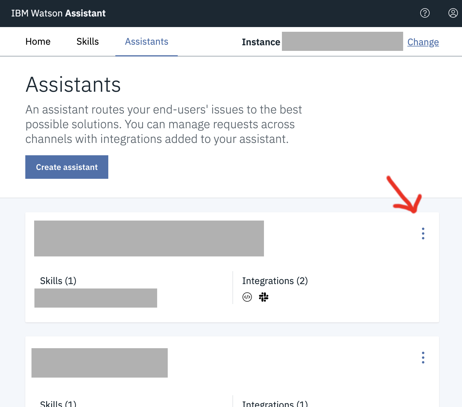 助手ID可以从最右边的“助理”选项卡中找到。不要单击助手本身(从那里您可以找到API详细信息),但是从助手的概述中,单击您希望看到的ID旁边的三个点: