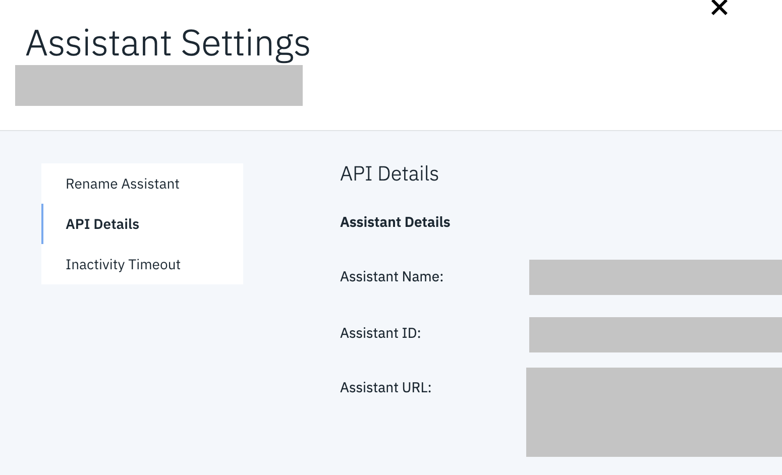 在那里,单击左侧的"API details“,其中显示了助手ID: