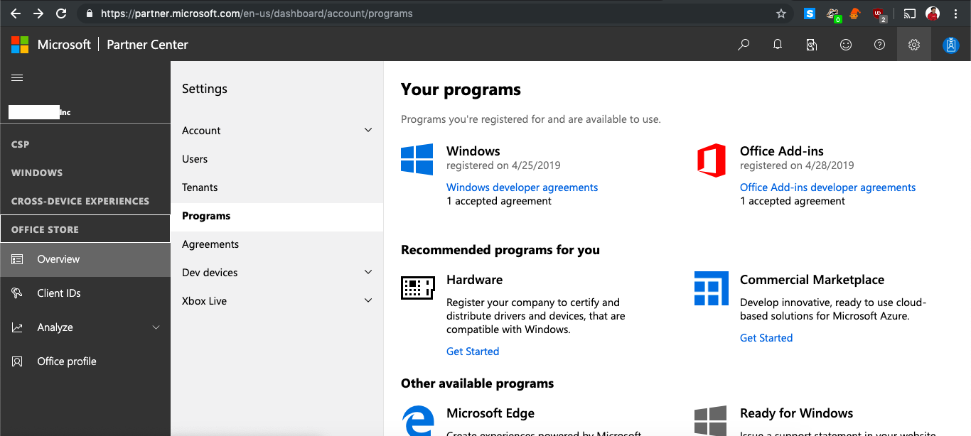 6:重定向到https://partner.microsoft.com/en-us/dashboard/Account/Management?accountProgram=Office
