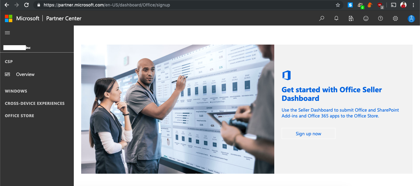 4:重定向到https://partner.microsoft.com/en-US/dashboard/Office/signup