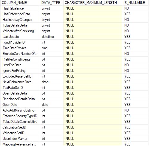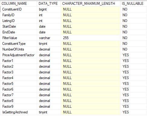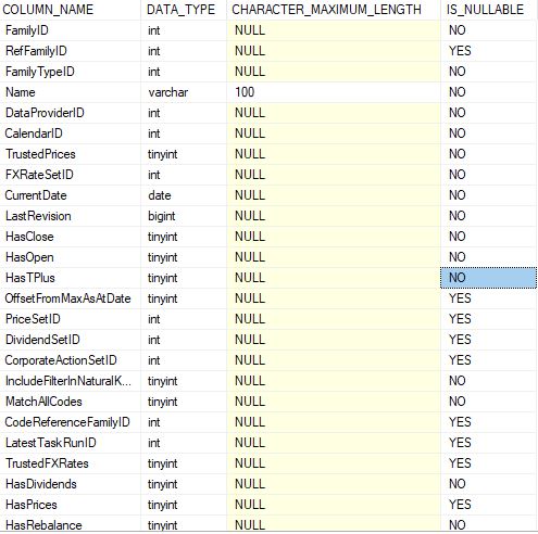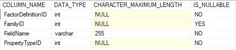 屏幕截图1是tblConstituent表,Secreen快照2是tblFactorDefinition表,屏幕快照3,4,5是tblFamily表: