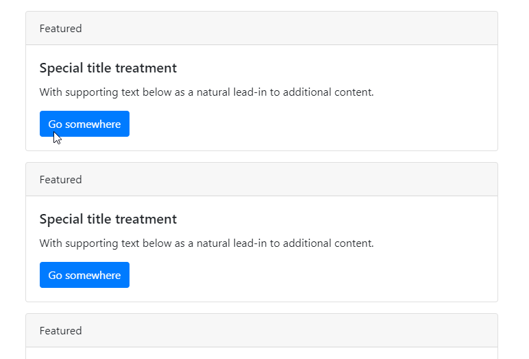 这里需要注意的是,在默认情况下,<div>设置为100%宽度。你可以在每一张卡片上加空白处,让它们看起来很好看:
