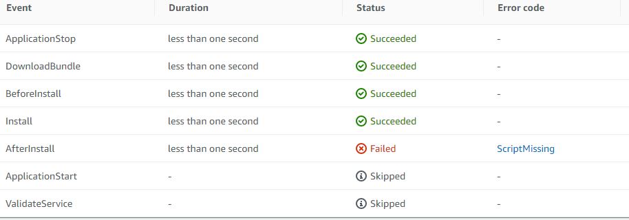 转到AWS控制台,通过CodeDeploy应用程序手动运行部署。一旦我遇到这种情况,即使文件存在。
