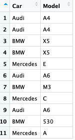 Cars <- data.frame(Car, Model, stringsAsFactors = FALSE)