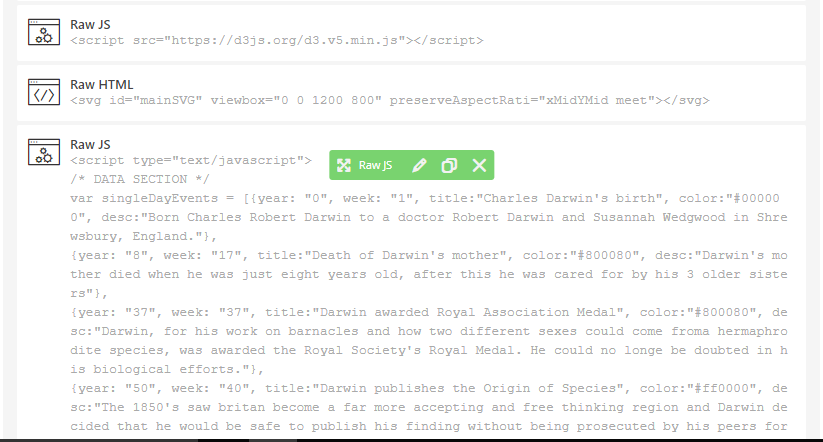 在我不使用d3.js库的页面上,页面生成器可以很好地工作。而且,当没有页面生成器时,可视化工作得很好--库加载并显示可视化。您可以在这里查看:https://conductscience.com/age-when-charles-darwin/