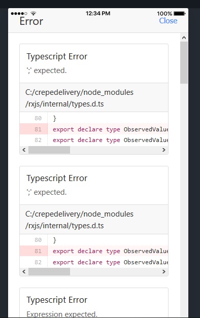 我正在运行一个Ionic 3项目,在命令终端上运行ionic serve -l之后,我得到了一系列错误: