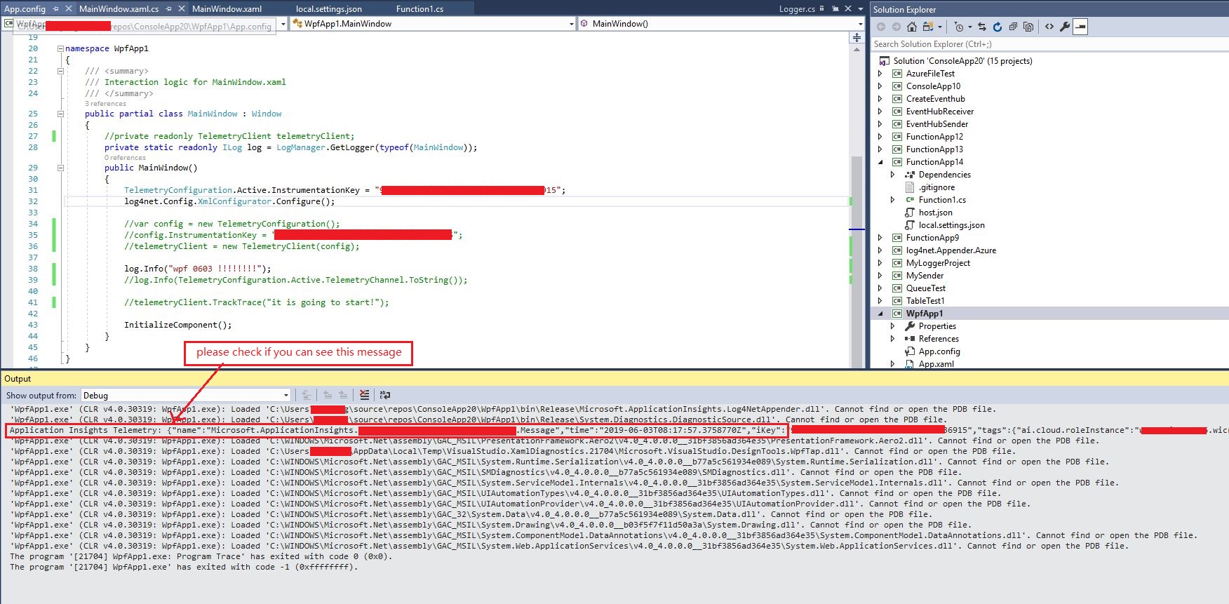 }您会得到错误"AI:服务器遥测通道未初始化“,可能是由于配置不正确,例如在上面的工作代码中使用以下代码: