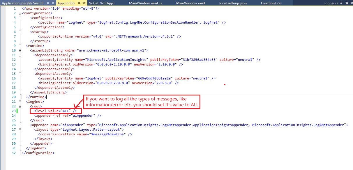 TelemetryConfiguration.Active.TelemetryChannel = new ServerTelemetryChannel();如果您必须添加一个遥测客户端(配置),并进行适当的配置,log4net和遥测客户端都可以将数据发送到应用程序洞察力。代码如下: