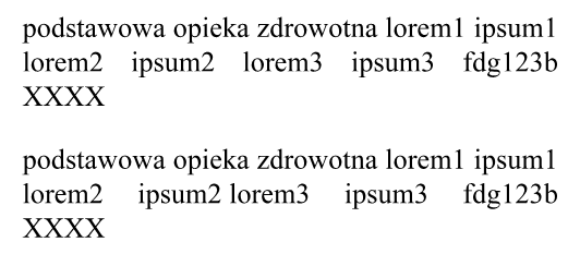 <fo:block axf:justify-nbsp="false">podstawowa opieka zdrowotna lorem1 ipsum1 lorem2 ipsum2 lorem3 ipsum3 fdg123b XXXX</fo:block>