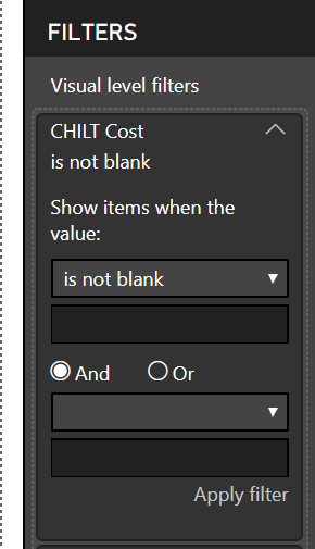 当您只希望Chilt成本不为空的行时,可以添加一个筛选器: