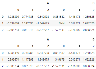 df.loc[1,('B',0)]=np.nan