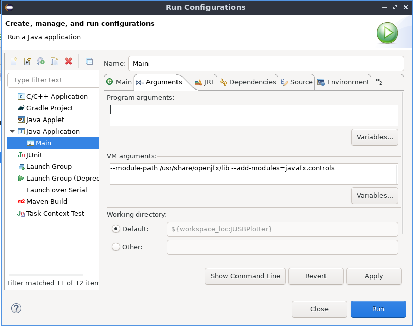 --module-path="/usr/share/openjfx/lib" --add-modules=javafx.controls,javafx.fxml我知道这个错误