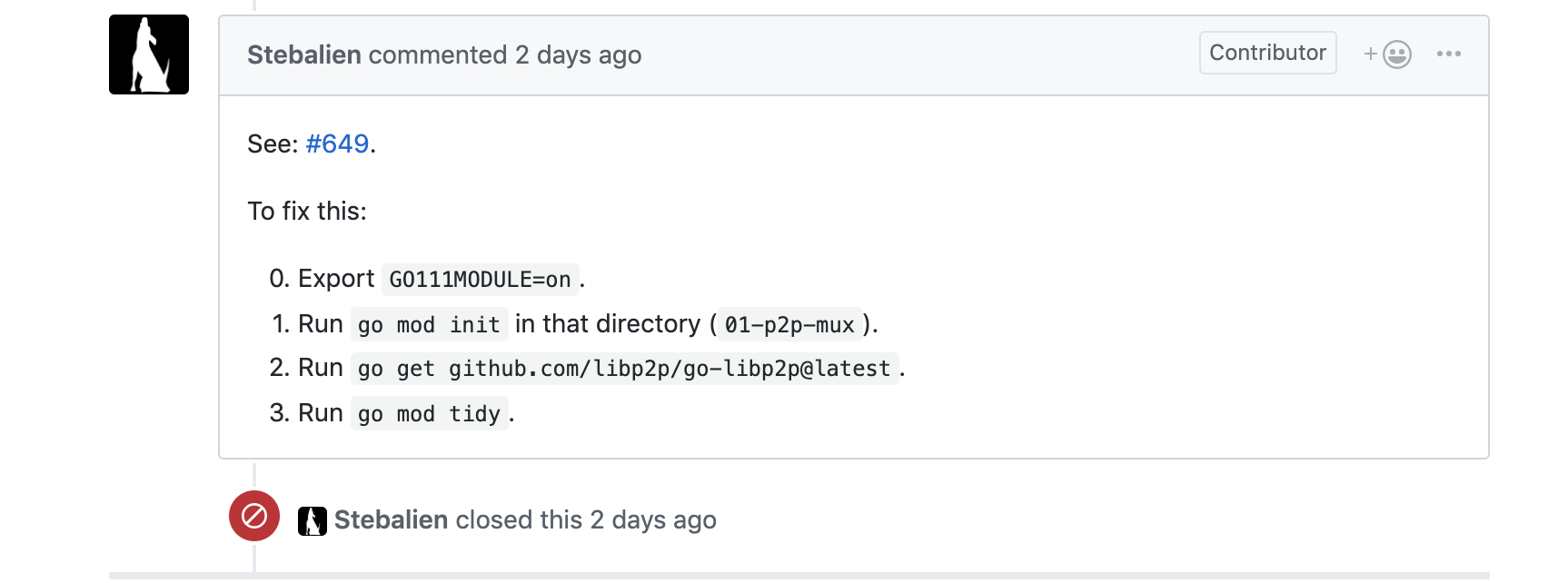 github.com/libp2p/go-libp2p/p2p/host/routed ../../libp2p/go-libp2p/p2p/host/routed/routed.go:153:20:不能使用rh.host.Mux() ( "github.com/libp2p/go-libp2p-core/protocol".Switch)类型作为返回参数中的*multistream.MultistreamMuxer类型:需要类型断言../../libp2p/go-libp2p/p2p/host/routed/routed.go:190:5:不能使用( *RoutedHost) (nil) (类型*RoutedHost)作为“github”类型。com/libp2p/go-libp2p-core/.Host in赋值:*RoutedHost不实现"github.com/libp2p/go-libp2p-core/host".Host (错误类型的Mux方法)有Mux() *multistream.MultistreamMuxer .Host() github.com/libp2p/go-libp2p/p2p/host/basic ../../libp2p/go-libp2p/p2p/host/basic/basic_host.go:145:32:不能使用h(类型*BasicHost)作为identify.NewIDService参数中的host.Host类型:*BasicHost没有实现host.Host (错误类型为Mux方法)有Mux() *multistream.MultistreamMuxer要Mux() "github.com/libp2p/go-libp2p-core/protocol".Switch../../libp2p/go-libp2p/p2p/host/basic/basic_host.go:172:32:不能使用h(类型*BasicHost)作为ping.NewPingService参数中的host.Host类型:*BasicHost没有实现host.Host (错误类型为Mux方法)有Mux() *multistream.MultistreamMuxer要Mux() "github.com/libp2p/go-libp2p-core/protocol".Switch