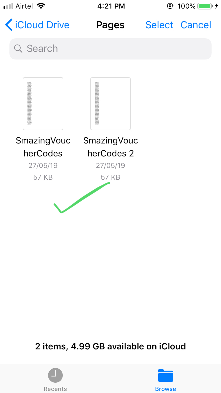 UIDocumentPickerViewController *dpvc = [[UIDocumentPickerViewController alloc] initWithDocumentTypes:types inMode:UIDocumentPickerModeImport];从页面应用程序(页面文件)创建的文件是灰色的,无法选择。但是WhatsApp文档选择器允许选择相同的文件。我错过了任何必要的UTI吗?