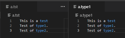 }然后,我在./syntaxes/tst.tmLanguage.json中创建了基本规则,.type1和.type2都是用我的语法应用的。
