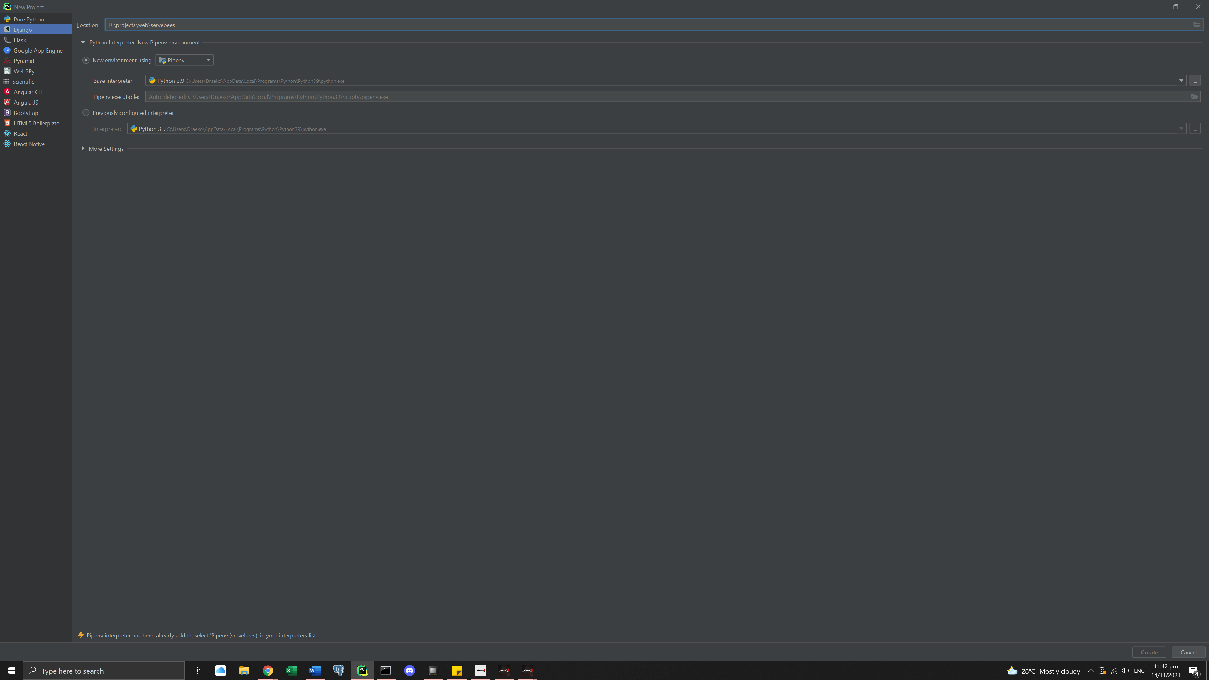 我在PyCharm中使用Pipenv进行了一个Python项目,我已经删除了这个项目,现在当我试图在相同的位置创建一个新项目时,我会得到以下错误: