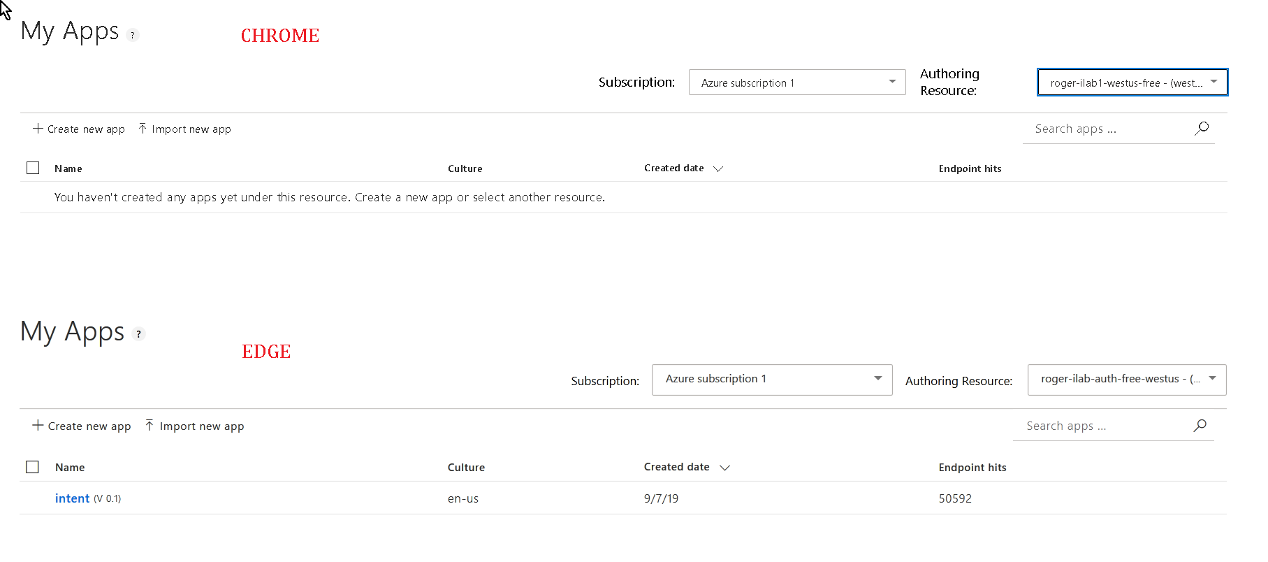 当我试图在LUIS.AI中找到这个服务时,我在当前的项目中定义了一个LUIS.AI应用程序id和键,它是不可见的。但是当我使用LuisAPI2.0控制台进行测试时,我可以看到响应是成功的。但我的问题是,我想培训和建设使用LUIS.AI网站。我想看看我的luis服务的意图列表,并相应地加以改进。请帮帮我。
