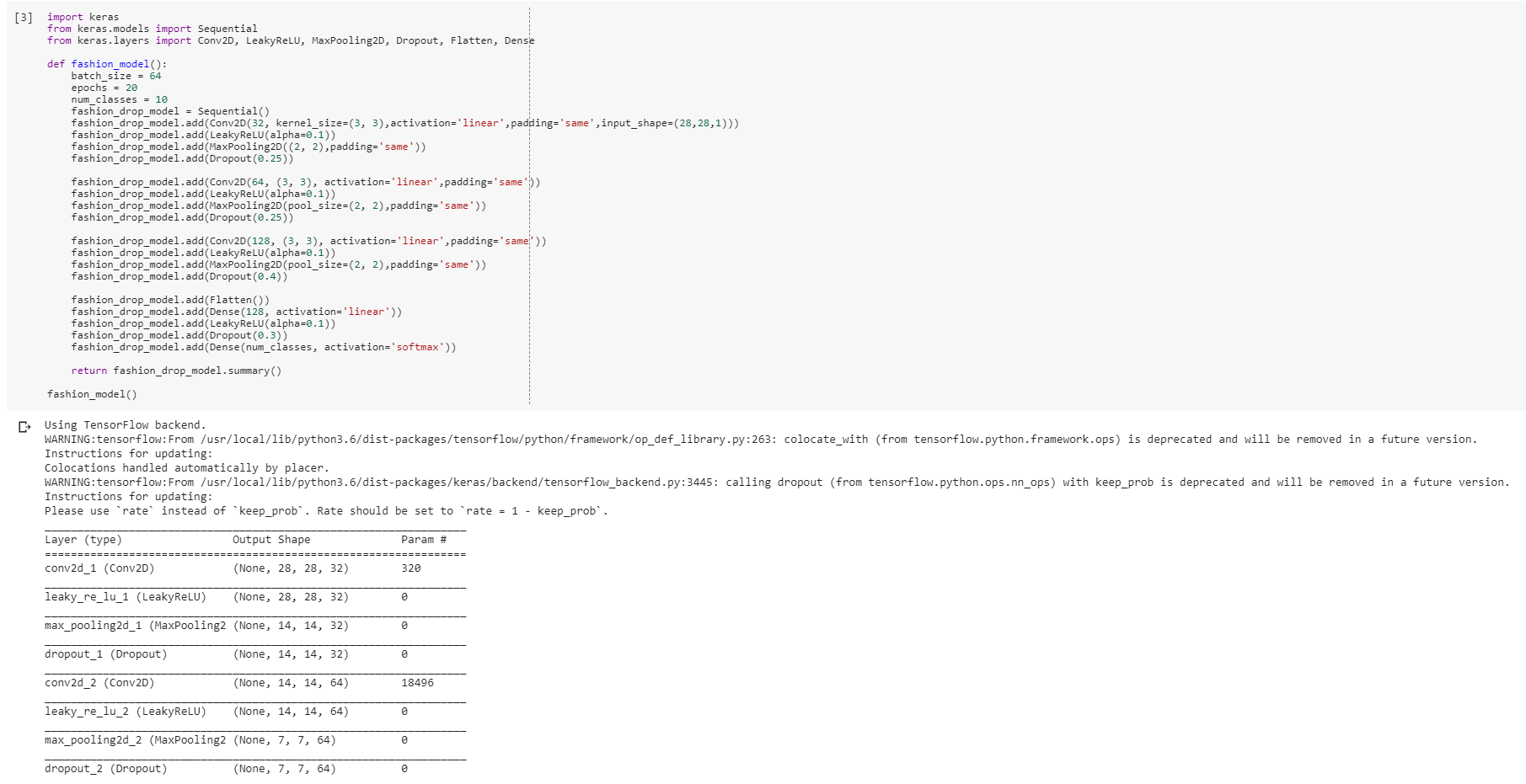 def fashion_model(): #<--在您完成此操作之后,代码将运行。在Google Col堕胎中运行这个程序,您将看到您的模型的摘要已经生成: