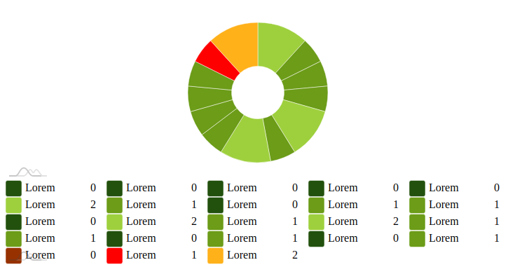 有10个项目是绿色的,每一个都有不同的数量。数量最多的切片应该有较深的颜色,而数量最少的切片的颜色应该是最轻的。