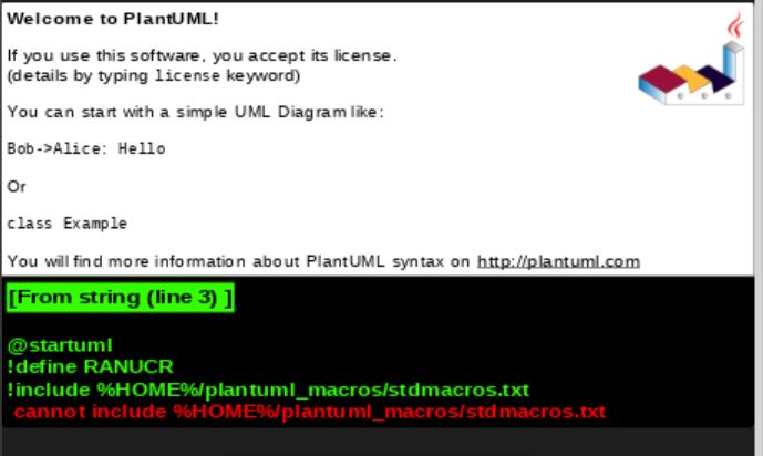 !include %getenv("HOME")/plantuml_macros/stdmacros.txt告诉我们它是不是这样运作的。谢谢
