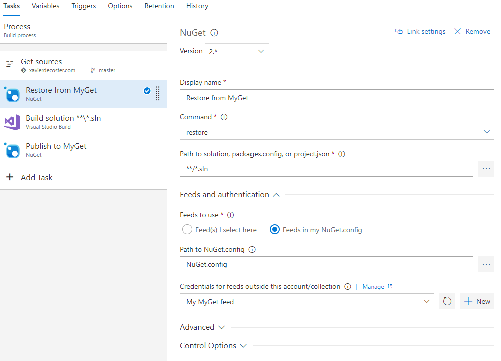 我在Azure上建立了一个网站,通过TFS存储库进行部署。当进程试图安装存储在myGet nuget服务器(而不是nuget.org )上的nuget包时,它会失败。我在与这链接相同的文件夹中添加了一个这文件(并签入了TFS)。