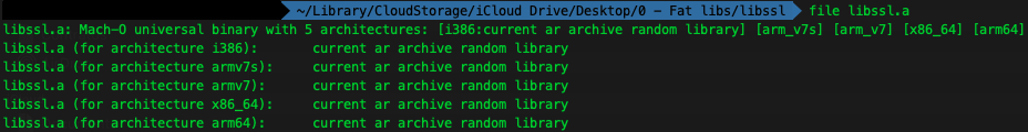 ./build-libssl.sh --archs="MacOSX_x86_64 i386 arm64 armv7s armv7"解释: