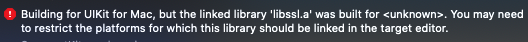 为Mac构建UIKit,但是链接库'libssl.a‘是为<未知>构建的。您可能需要限制应该在目标编辑器中链接此库的平台。
