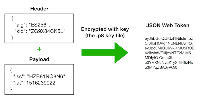 发送到查询和更新端点的每个请求都必须包括包含身份验证密钥的授权头。身份验证密钥必须使用ES256算法,并且必须采用Base64URL编码的JSON令牌格式。如果令牌不使用此格式,则会收到BAD_AUTHENTICATION_TOKEN HTTP错误。