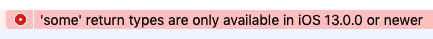 some协议返回类型的声明需要iOS 13、macOS 10.15、watchOS 6或tvOS 13中的SWIFT5.1运行时,但是Swift编译器没有强制执行。在以前的操作系统版本上运行使用some返回类型的应用程序可能会在运行时崩溃.解决方案:只将使用some返回类型的二进制文件部署到iOS 13、macOS 10.15、watchOS 6和tvOS 13。