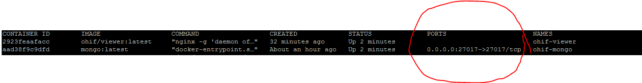 目前,我能够在本地访问mongo (localhost:27017(端口转发后)),而OHIF查看器是不可能的(端口是不可见/空的,所以我无法在本地访问它们)。你能指导我如何设置它们吗?