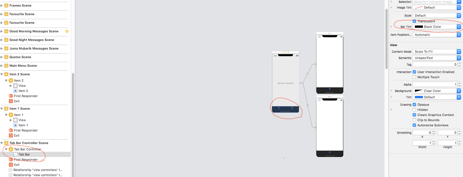 您可以使用故事板更改颜色,选择选项卡栏作为圆圈,从左侧选择Bar Tint,选择任意想要的颜色