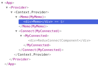 首先,虽然React.memo是一个临时的,但它创建的嵌套并不像connect那样有趣。我已经创建了一个测试代码: