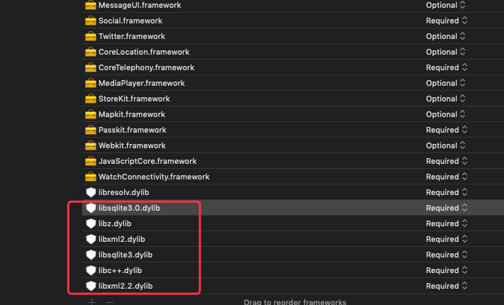 并添加VideoToolbox.framework和CoreMotion.framework。
