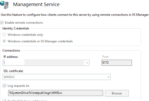 在我的服务器上,我有web部署程序3.5安装和web管理服务也在运行。也没有防火墙问题。我已经重新启动了web管理服务,仍然没有运气。