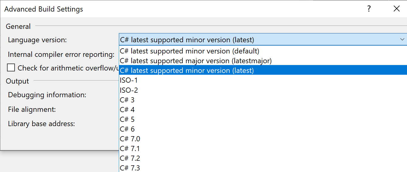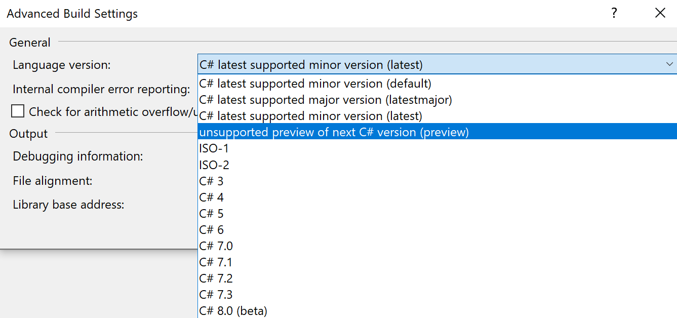 项目Properties不提供“下一个C#版本(预览)的不支持预览”作为选项: