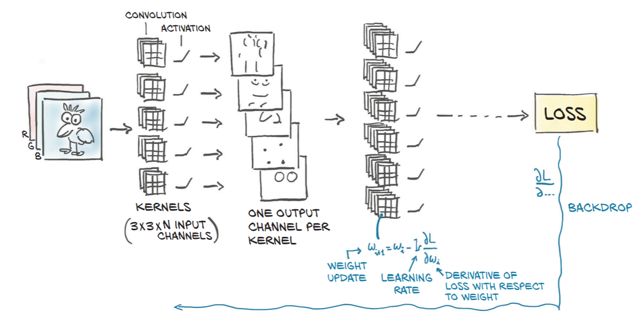 in_Channels表示输入图像中的信道数,而out_channels表示卷积产生的信道数。在图像数据的情况下,最常见的情况是灰度图像,它将有一个通道,黑色或彩色图像将有三个通道-红色、绿色和蓝色。out_channels是一个优先考虑的问题,但是有一些重要的事情需要注意。