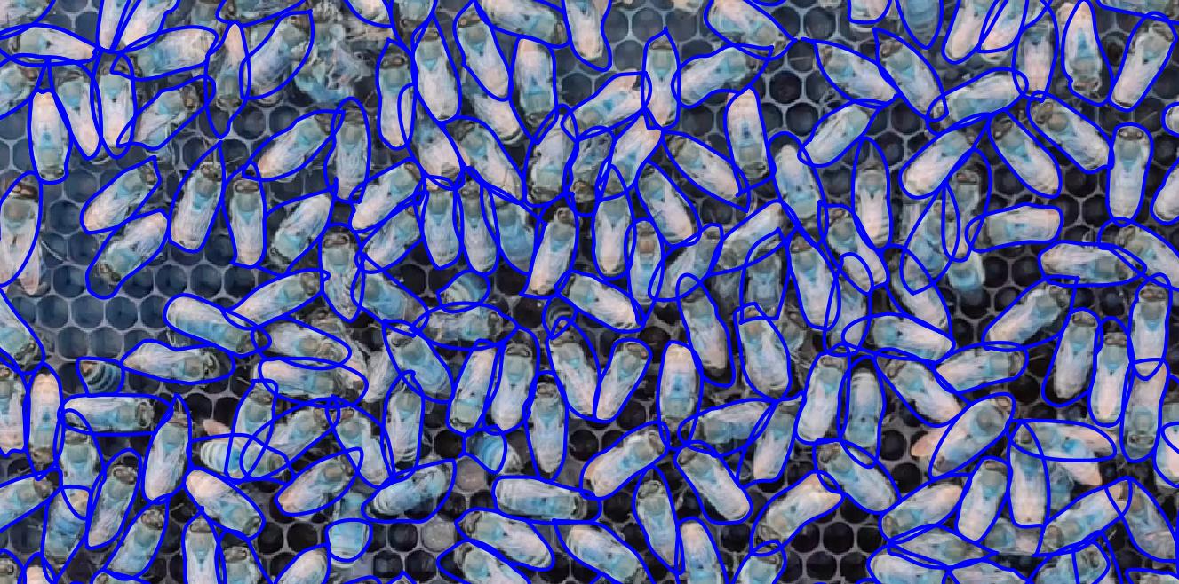 我想在给定的图像上训练一个面具-RCNN,为了训练面具-RCNN,我需要每个蜜蜂实例的轮廓。