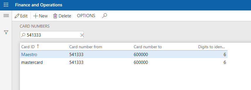 在D 365\零售渠道设置\支付方式\卡号中,我在MasterCard和大师上都添加了卡号