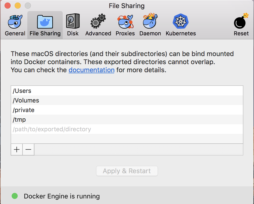 正如它所暗示的,我试图通过Docker->Preferences配置以下路径