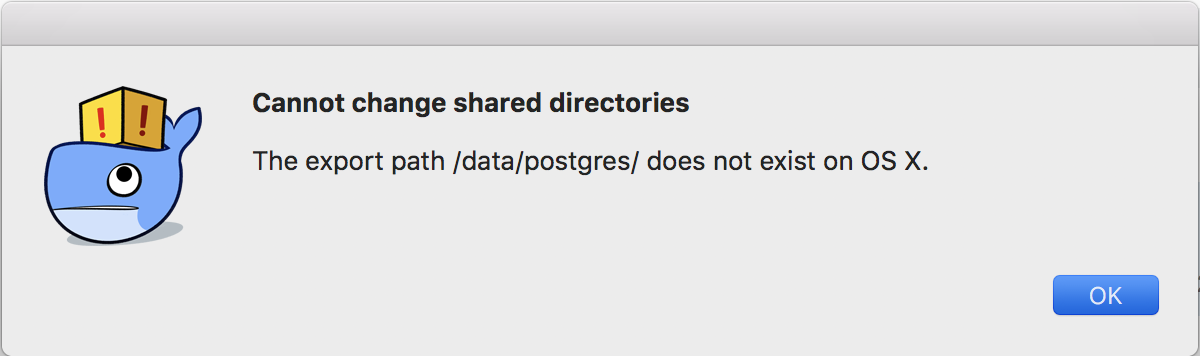 ERROR: for postgres Cannot start service postgres: b'Mounts denied: \r\nThe path /data/postgres\r\nis not shared from OS X and is not known to Docker.\r\nYou can configure shared paths from Docker -> Preferences... -> File Sharing.\r\nSee https://docs.docker.com/docker-for-mac/osxfs/#namespaces for more info.\r\n.'