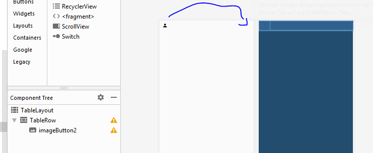 gravity属性指定“我的孩子是如何在我体内对齐的”--例如。TextView中的文本,布局中的视图。layout_gravity告诉家长“我想如何定位”。并非所有布局都尊重其子女的layout_gravity,在这种情况下,将gravity="end"设置为您的TableRow works。您可以将gravity和layout_gravity从ImageButton中删除。