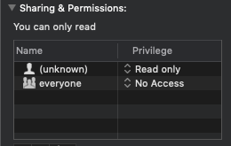 该驱动器可以挂载只读与一些禁止访问的RPi,数据很可能是安全的。目前,驱动器拒绝在macOS上挂载,所以我不能使用macOS来启用ignore ownership on this volume。