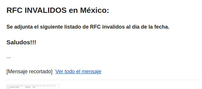 "<h4>Se adjunta el siguiente listado de RFC inválidos al día de la fecha.</h4>" +